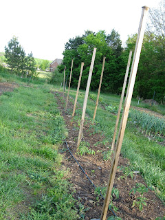 On the left there you can see the bean ‘ladder’. I have pole beans, cucumbers and cantaloupe planted at the base. I’ll train them to grow up the ladder and hopefully keep them out of reach of the dogs.